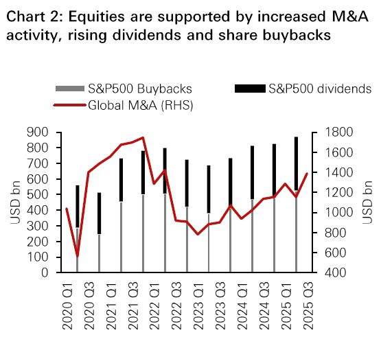 • We see further upside for US equities due to multiple drivers in place, with rate cuts being one of those. The AI liftoff drives huge activity and investment in the AI ecosystem. Together with a healthy pick-up in M&A activity, steady increases in share buybacks and dividends, as well as a constructive cyclical outlook and structural drivers such as nearshoring and the US re-industrialisation, we stay bullish on US equities, preferring IT, Communications, Industrials and Financials.