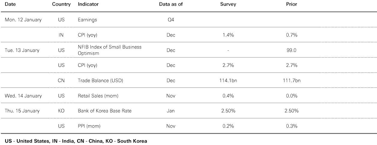 The value of investments and any income from them can go down as well as up and investors may not get back the amount originally invested. Past performance does not predict future returns. The level of yield is not guaranteed and may rise or fall in the future. For informational purposes only and should not be construed as a recommendation to invest in the specific country, product, strategy, sector, or security. Diversification does not ensure a profit or protect against loss. Any views expressed were held at the time of preparation and are subject to change without notice. Any forecast, projection or target where provided is indicative only and is not guaranteed in any way. Source: HSBC Asset Management, Bloomberg, Macrobond. Data as at 7.30am UK time 09 January 2026.