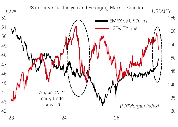 For EMs, the biggest selling pressure comes when both the yen and the dollar are strengthening. But with EM currencies gaining against the dollar last week, the incentive to unwind yen-funded positions is reduced. Nonetheless, it’s a reminder that global investors should be wary of the impact of Japanese market volatility.