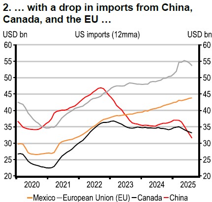 Some lagging US data have already been released, including August trade data, which showed a smaller US trade deficit. This was likely reflecting some payback following earlier frontloading trends. Tariff uncertainty prevails though, as sector tariffs could change, and we await a Supreme Court ruling on the International Emergency Economics Powers Act (IEEPA) tariffs. Yet some tariffs are falling too, given the recent détente between the US and China, and, following signs that tariffs are raising consumer prices, several agricultural products have been excluded from scope.
