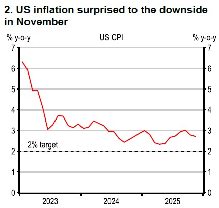 And with immigration slowing and productivity rising, the unemployment rate edged back down to 4.4% in December. Also, US inflation has come down, but technical quirks are playing a role and globally input prices, particularly memory chips, are clearly on the rise. Moreover, government opening effects and tax cuts should support US growth in 1H26.